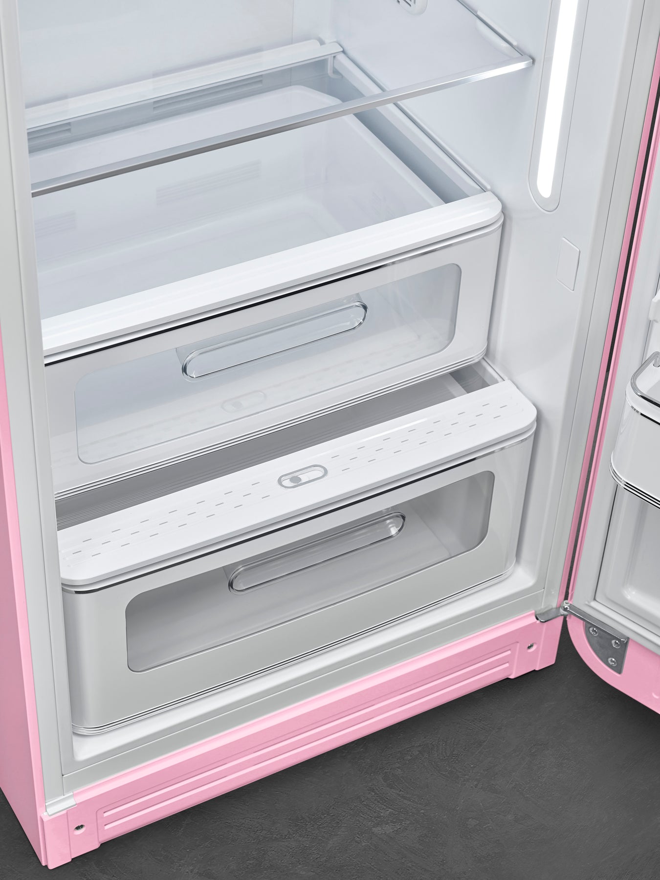 Like other timeless designs, the original Smeg FAB refrigerator is more than just a mere fridge. It s the focal point of the kitchen, bringing together unquestionable style and premium performance. Always evocative and eclectic, FAB fridges have become standard bearers for Made in Italy design all over the world with their inimitable blend of artistry and functionality. Set the optimal conditions for a variety of food and beverages with Smeg s electronic temperature control display. At the touch of a button, accurately monitor temperature for fridge and freezer with a simple to use dial control.